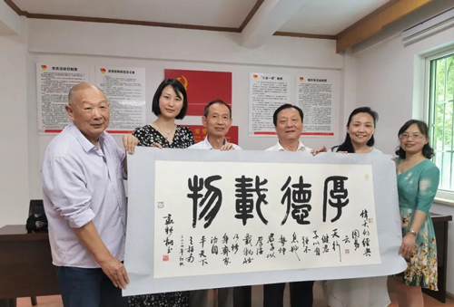 会后,,,,,纪武代表仁众教育基金会向果博官网慈善基金会赠予国家一级美术师嬴梧桐所书“厚德载物”书法作品一幅。。。。。