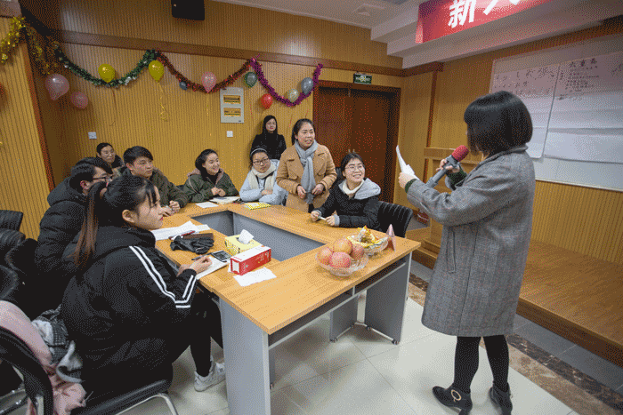 节日装扮的果博官网学院课堂、仔细准备的零食水果、分小组举行大PK……这样的座谈会让40余名新员工意想不到。。。。在主持人的暖场后,,,,由新员工分成的6个小组,,,,轮流举行小组先容,,,,霸气的队名、响亮的队歌,,,,每一次呐喊都充满年轻的生气。。。。随后,,,,举行“我与果博官网”和“我的2018”两轮主题演讲,,,,每组代表连系自身来到果博官网的事情履历、心态转变以及职业妄想,,,,对主题举行阐释,,,,每一次分享都是一段与果博官网相关的青春故事,,,,引发在场新员工的一致共识。。。。